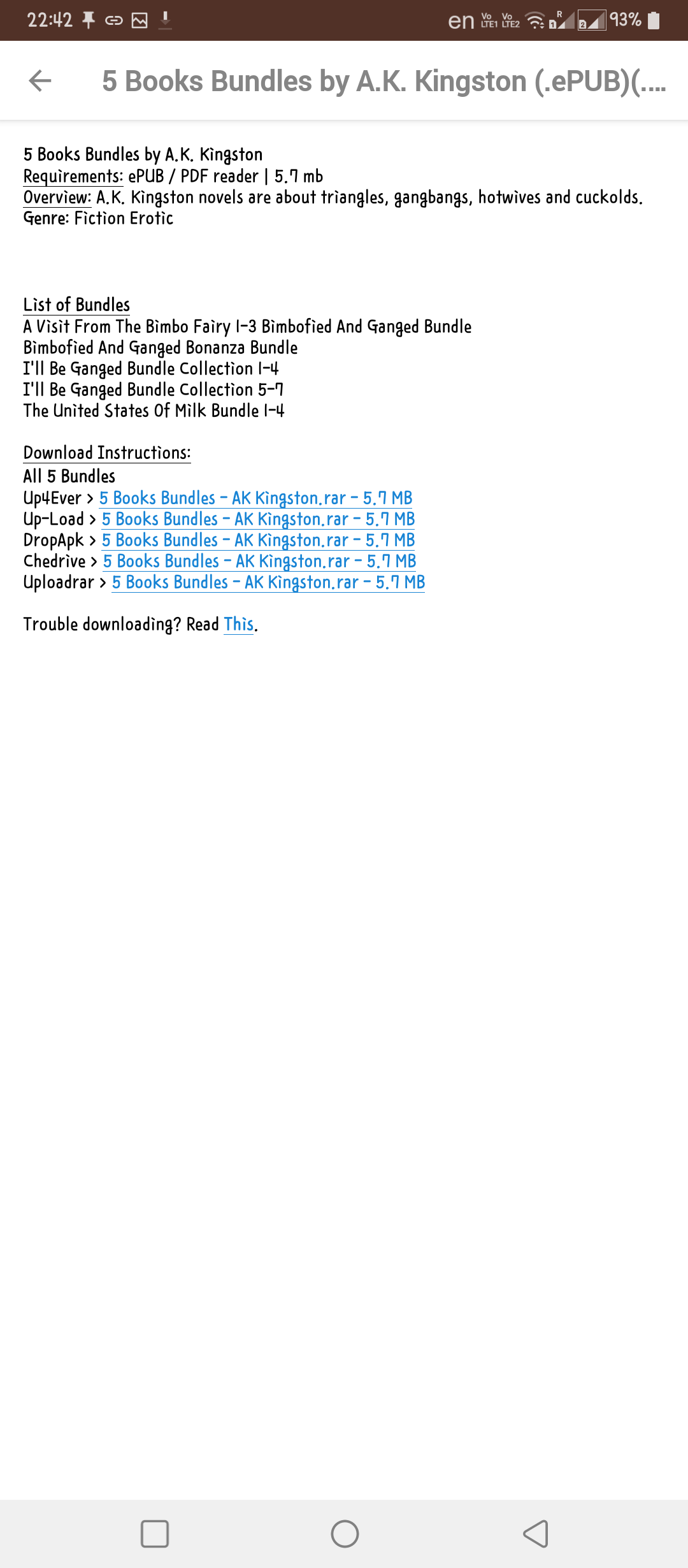 Using the mobilism app, when clicking premium, there are no links, but the post has it like the 3rd image.