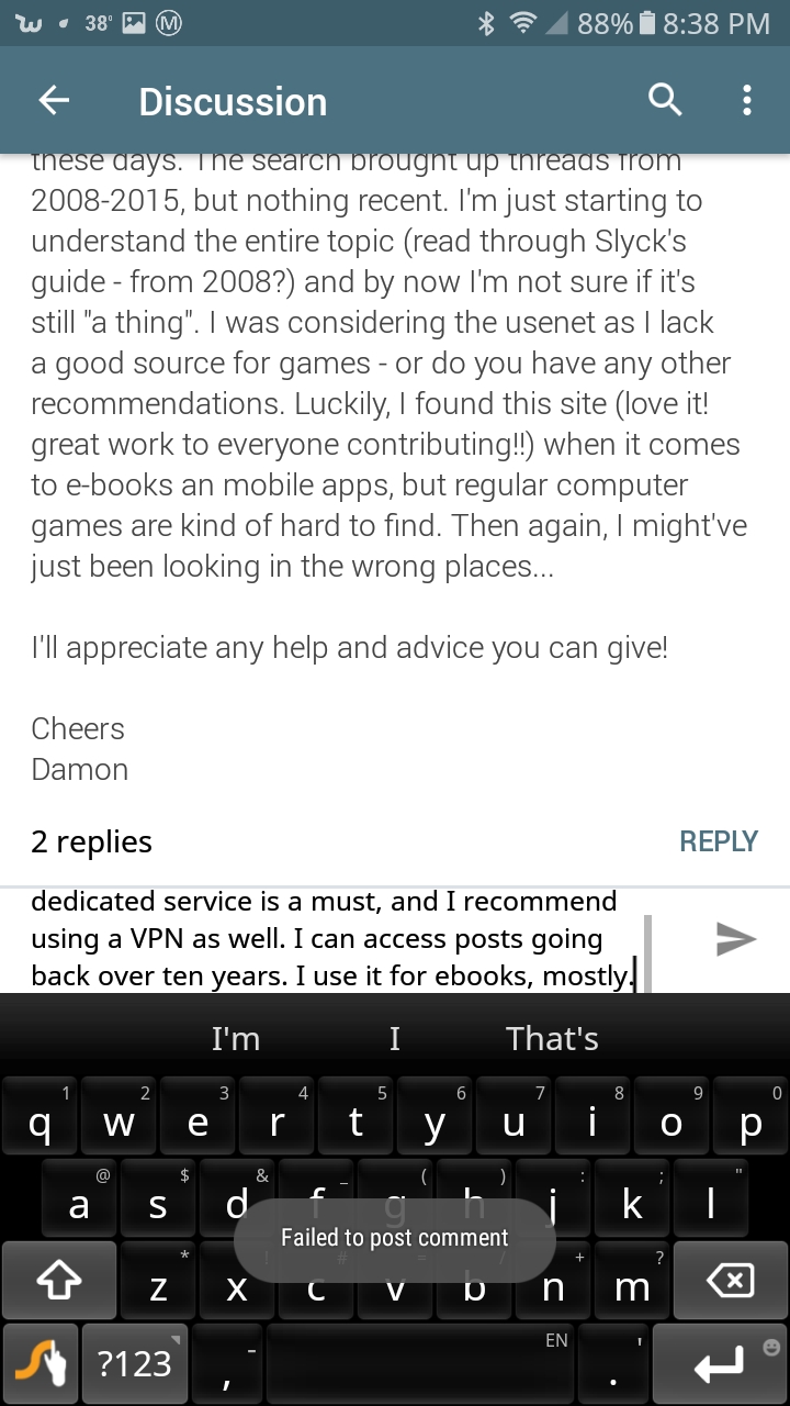 I was trying to respond to a post in the forums, and the text entry wouldn't allow me to type more than a very limited number of characters. I shortened the entry, then hit the post button, and got an error saying "Failed to post comment." I tried a few more times, getting the same message. Checking from my desktop machine, I found that it *did* post those replies (which I have since deleted.) If you need any extra data, please let me know.